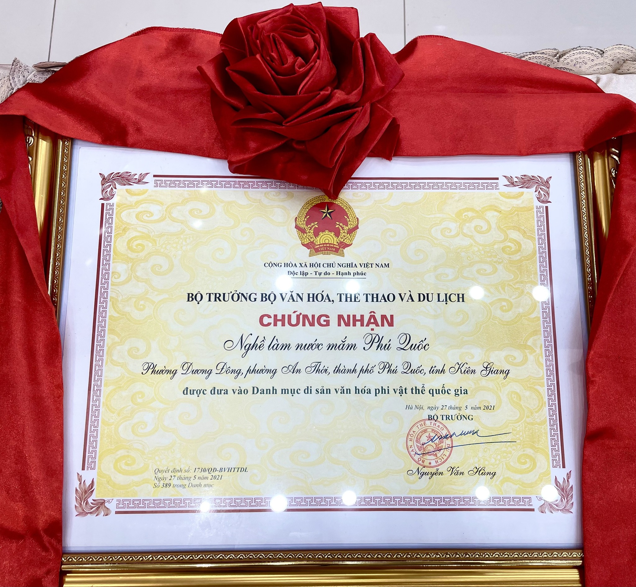 Sáng 16-12, tại TP. Phú Quốc, UBND tỉnh Kiên Giang tổ chức lễ đón nhận bằng di sản văn hóa phi vật thể quốc gia “Nghề thủ công truyền thống, tri thức dân gian nghề làm nước mắm Phú Quốc”.