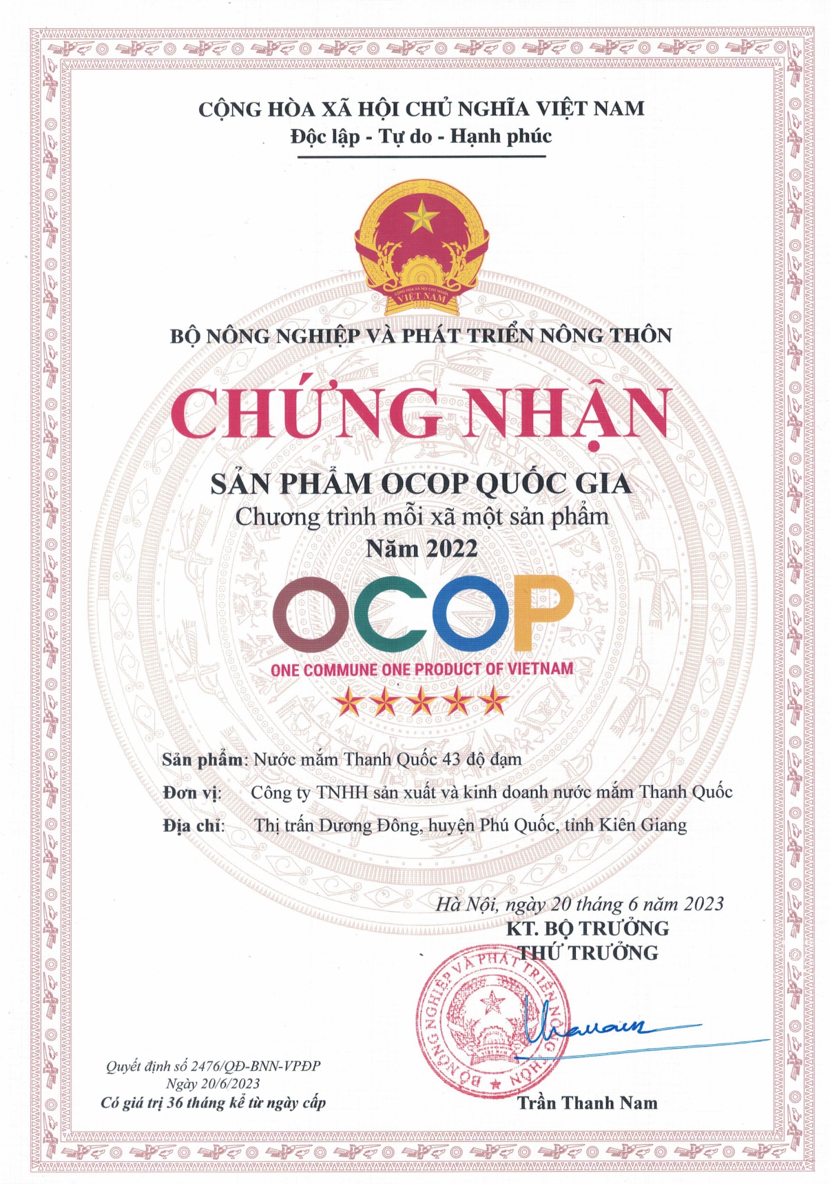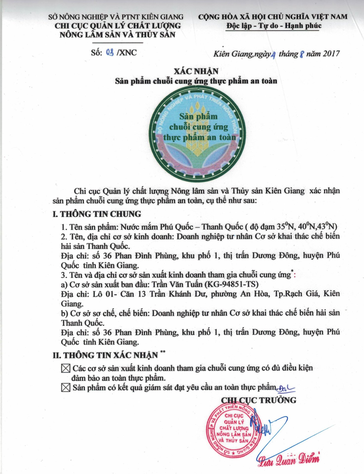 Với 50 năm kinh nghiệm, nước mắm Thanh Quốc tự hào tiên phong mang chỉ dẫn địa lý về với Phú Quốc.
