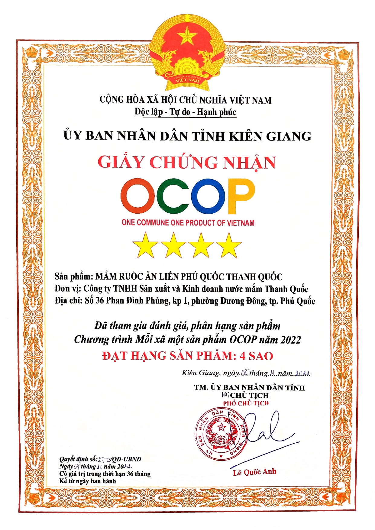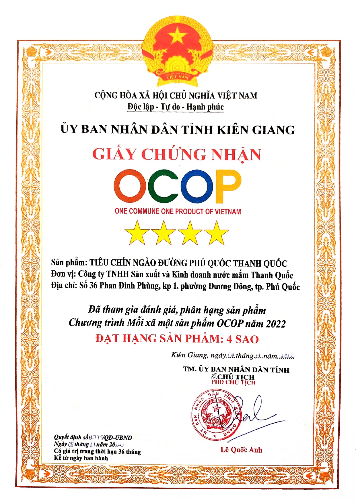 Ngày 16/11/2022, Thanh Quốc vừa xuất khẩu thành công lô hàng nước mắm Phú Quốc và các sản phẩm đặc sản Phú Quốc đầu tiên qua thị trường Mỹ.
