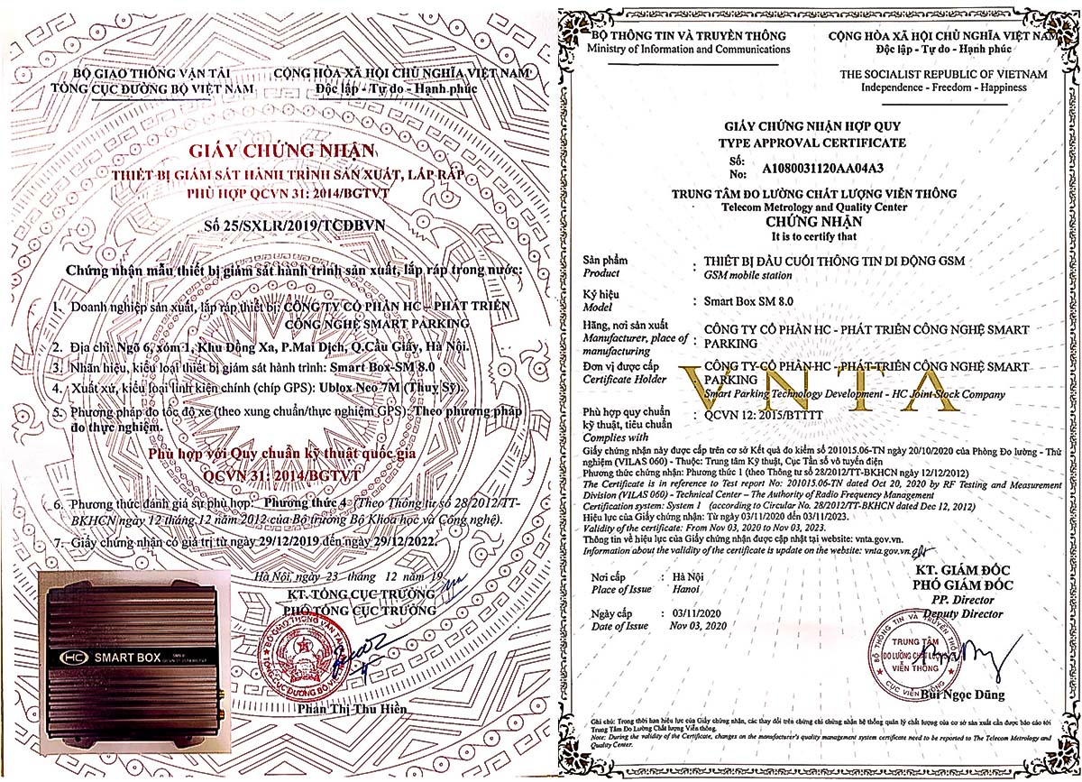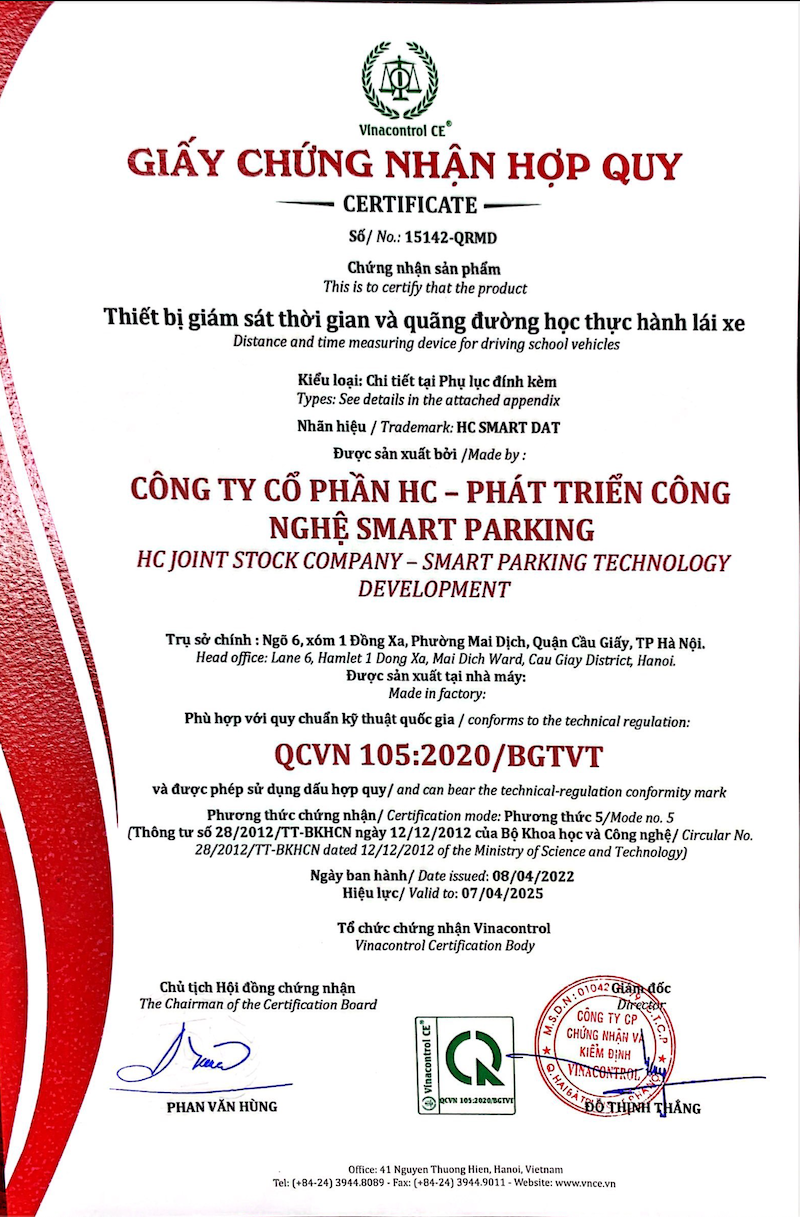 - Đạt Quy chuẩn Quốc gia QCVN 105:2020/BGTVT, Chứng nhận Hợp quy sản phẩm theo số 12126-HCMD.