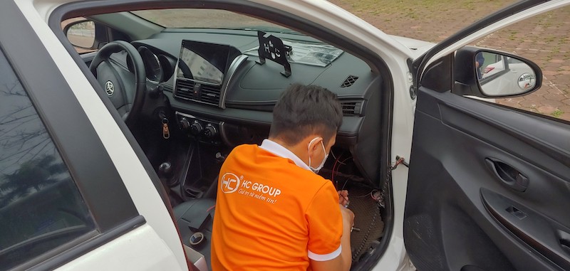 Nhân viên kỹ thuật HC Group lắp đặt DAT trên xe