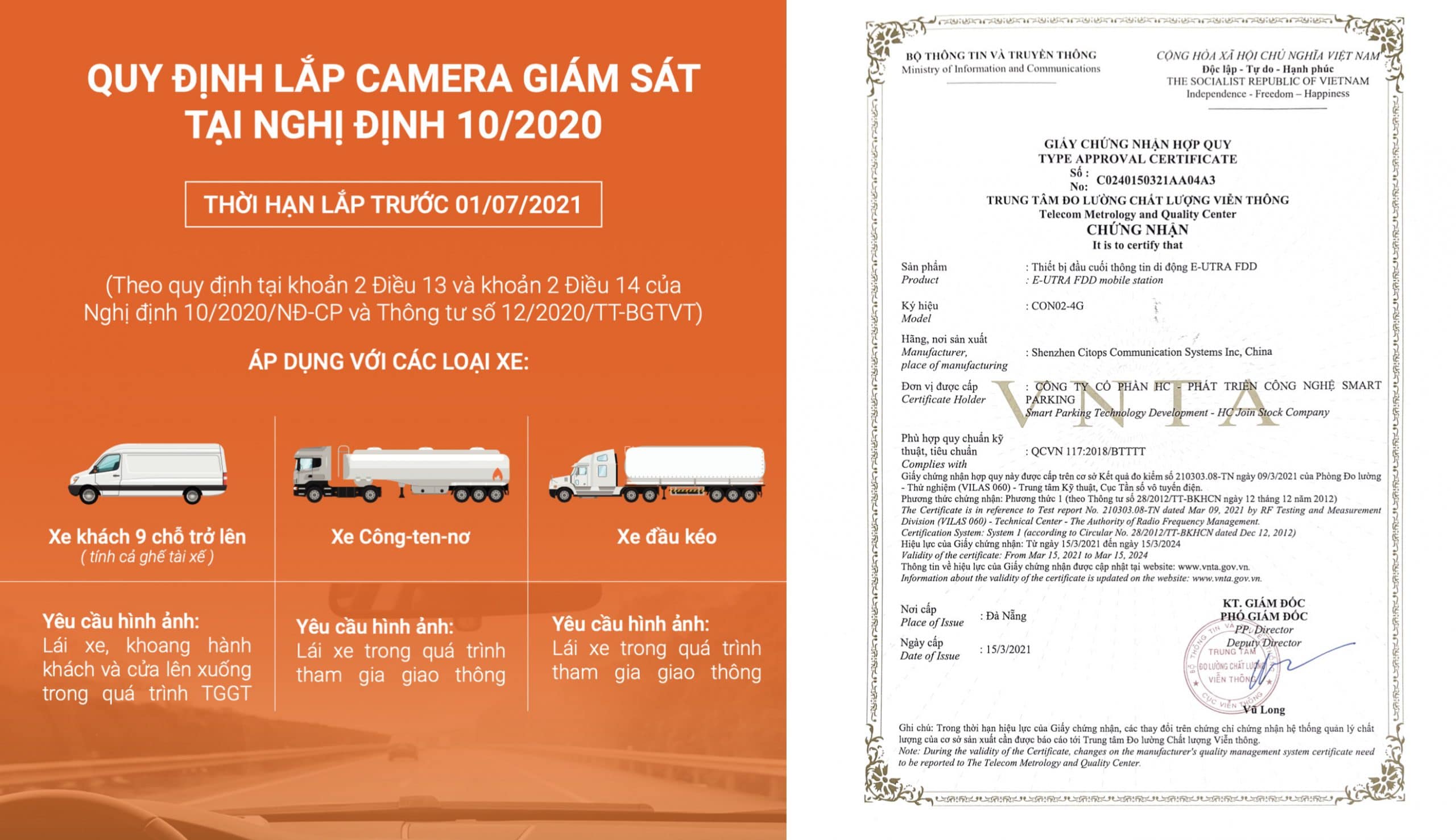 - Đạt chứng nhận hợp quy theo Nghị định 10/2020 của Chính phủ