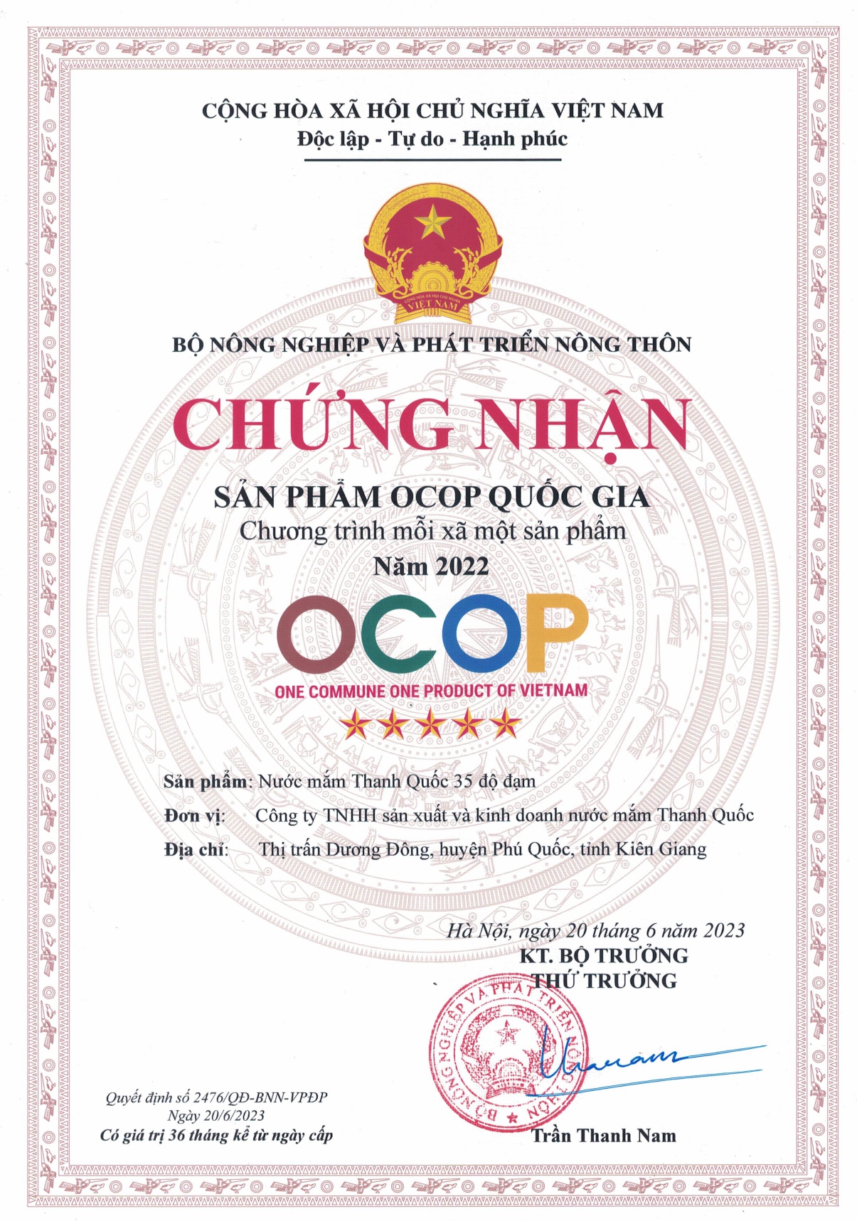 Với 50 năm kinh nghiệm, nước mắm Thanh Quốc tự hào tiên phong mang chỉ dẫn địa lý về với Phú Quốc.