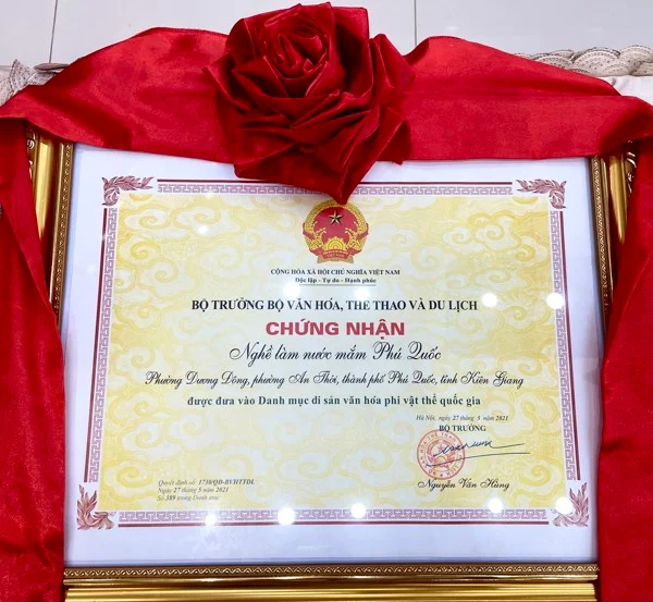 Nghề làm nước mắm Phú Quốc là di sản văn hóa phi vật thể quốc gia