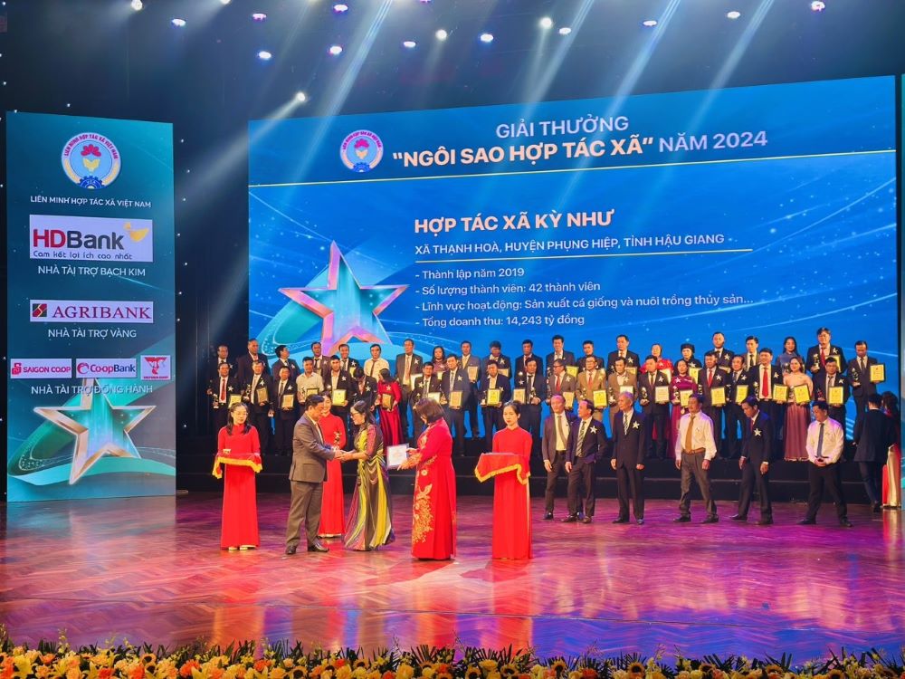 Với nỗ lực và những đóng góp cho kinh tế địa phương và xã hội, Hợp tác xã Kỳ Như tự hào và vô cùng vinh hạnh khi là 1/100 hợp tác xã có vinh dự nhận được giải thưởng "Ngôi Sao Hợp Tác Xã" lần thứ 1 năm 2024. Giải thưởng này là động lực và quyết tâm để Hợp tác xã Kỳ Như tiếp tục phấn đấu và phát triển nhằm đưa các hợp tác xã của Hậu Giang nói riêng và cả nước nói chung trở thành hạt nhân, nòng cốt, đi đầu trong thực hiện hiệu quả các phong trào phát triển kinh tế tập thể, hợp tác xã trên cả nước như mong muốn mà Chủ tịch Liên minh Hợp tác xã Việt Nam Cao Xuân Thu Vân đã nhấn mạnh trong buổi trao giải thưởng!