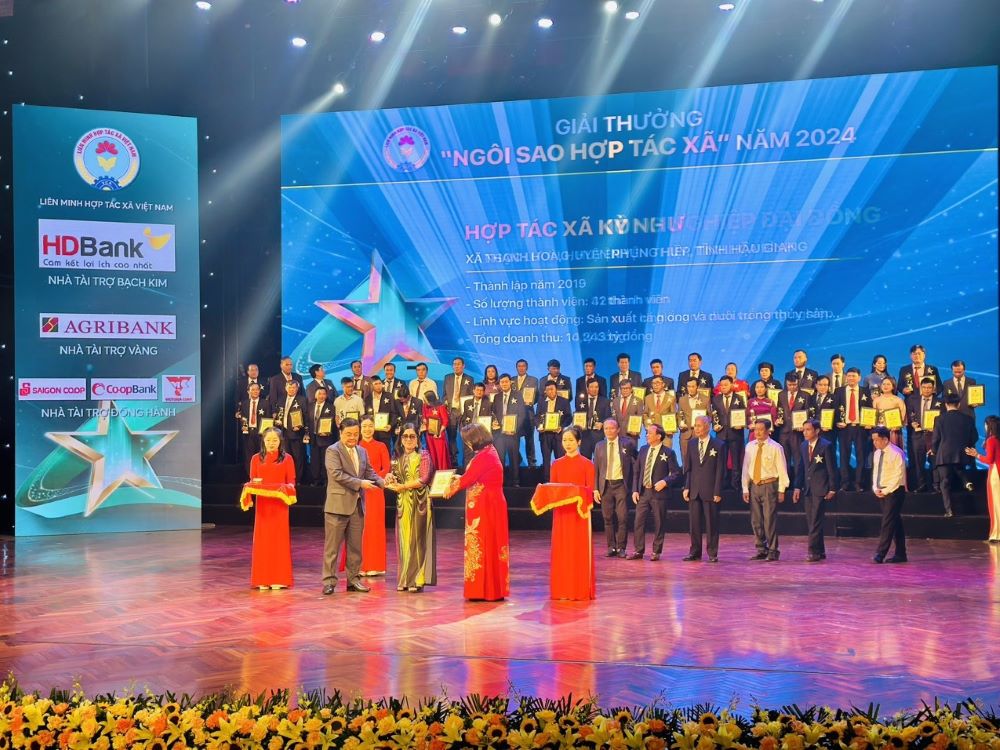 Tại buổi lễ, 100 hợp tác xã trong số 128 hợp tác xã tiêu biểu được đề cử từ trên 31 nghìn hợp tác xã của cả nước đã được tôn vinh và nhận giải Ngôi sao Hợp tác xã Việt Nam năm 2024.
