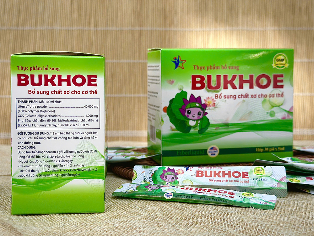 Sản phẩm được sản xuất tại Việt Nam dưới sự giám sát chất lượng nghiêm ngặt tại Xưởng Sản Xuất Nutifine, đảm bảo tuân thủ tiêu chuẩn TCCS. Với công thức độc quyền chứa Litesse Ultra powder và Galacto-oligosaccharides (GOS), Bukhoe Fiberliquid không chỉ cung cấp một lượng chất xơ dồi dào mà còn hỗ trợ hệ vi sinh đường ruột khỏe mạnh, giúp giảm nguy cơ táo bón và cải thiện chức năng tiêu hóa.