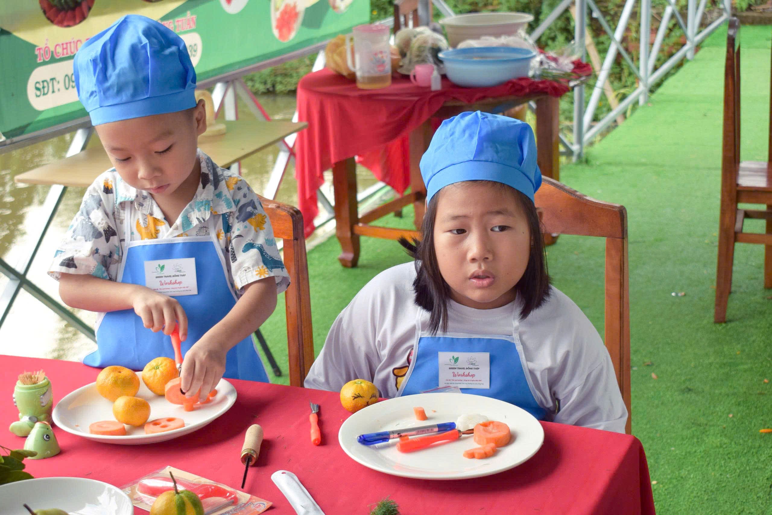 Điểm nhấn thú vị trong buổi cuối khóa là Workshop dành cho các bé. Các em nhỏ được trực tiếp trải nghiệm tạo hình từ rau củ, vừa vui chơi vừa học hỏi, tạo nên không khí hứng khởi và gần gũi. Đây là cách gieo mầm tình yêu nghệ thuật ẩm thực cho thế hệ trẻ ngay từ những trải nghiệm đầu đời.