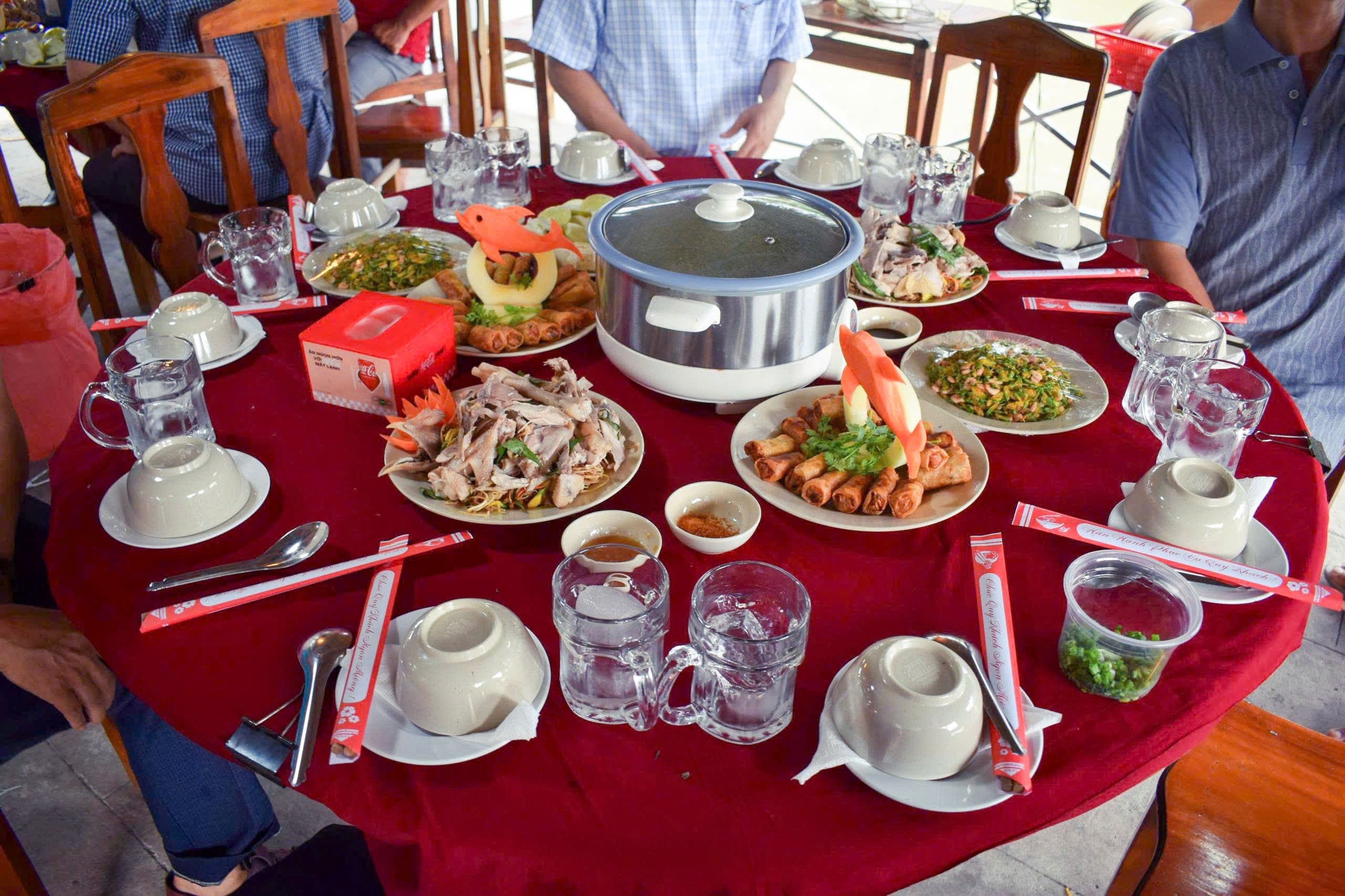 Không dừng lại ở việc học tập, các thành phẩm điêu khắc đã được trang trí trực tiếp trong buổi tiệc tại Khu du lịch Vườn Dừa Út Khuê. Những đĩa rau củ nghệ thuật trở thành điểm nhấn sinh động trên bàn tiệc, cho thấy tính ứng dụng cao và giá trị thực tiễn mà lớp học mang lại cho đời sống và hoạt động du lịch.