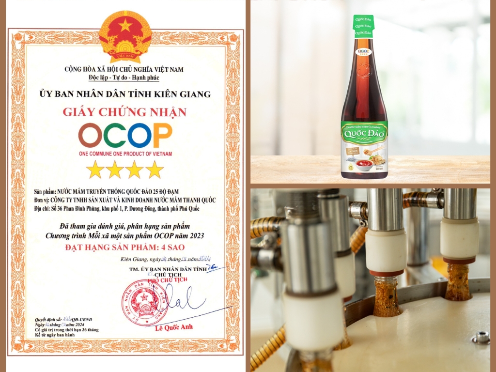Nước Mắm Truyền Thống Quốc Đảo Thanh Quốc 25N 500ml được ủ chượp từ cá cơm tươi và muối biển, mang màu nâu cánh gián tự nhiên và vị đậm đà đặc trưng. Sản phẩm đạt chứng nhận OCOP 4 sao, khẳng định chất lượng uy tín và an toàn cho sức khỏe. Đây là gia vị t